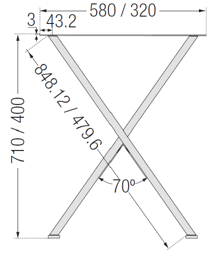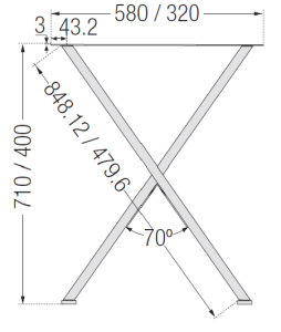 - Galda kāju platums: 580 mm